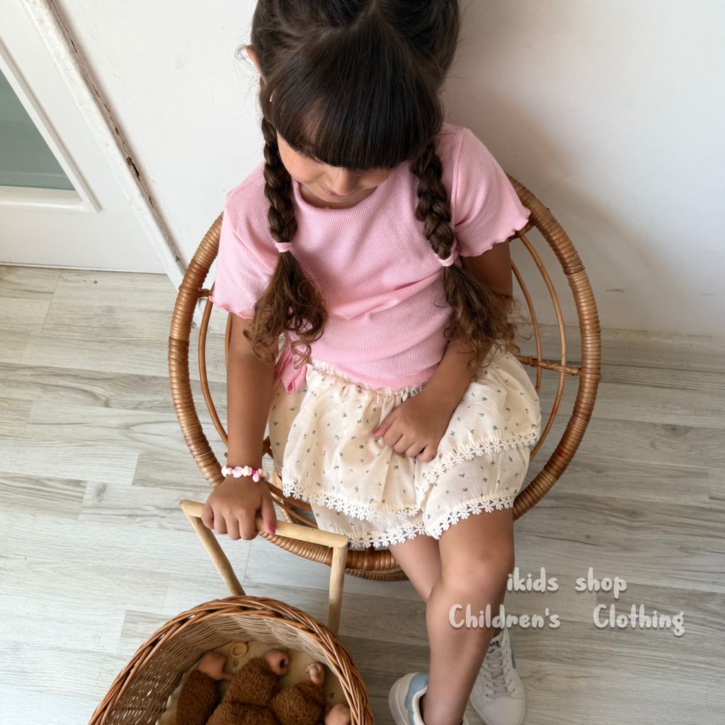 دوتیکه صورتی کرم (دامن شلواری گلدار)